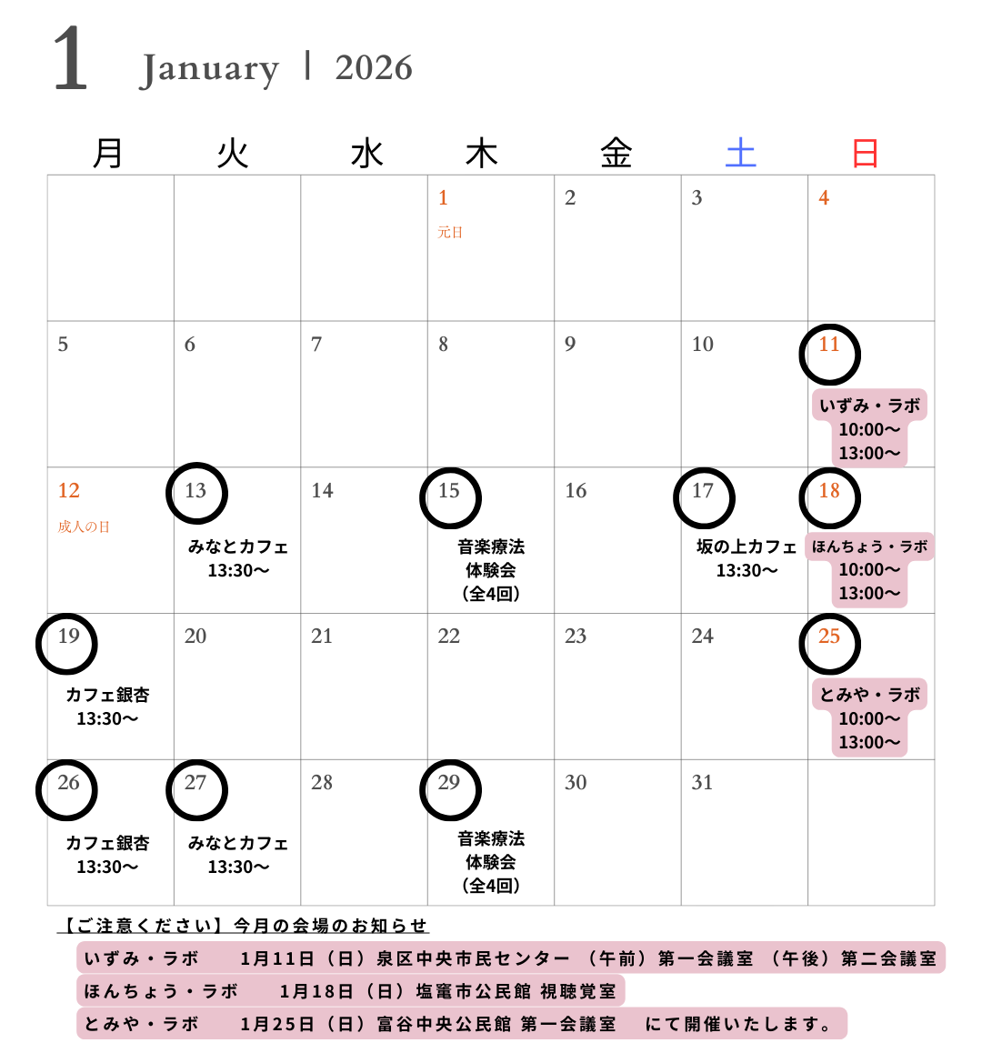 11月,12月のスケジュールを一部変更しております。
